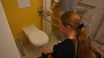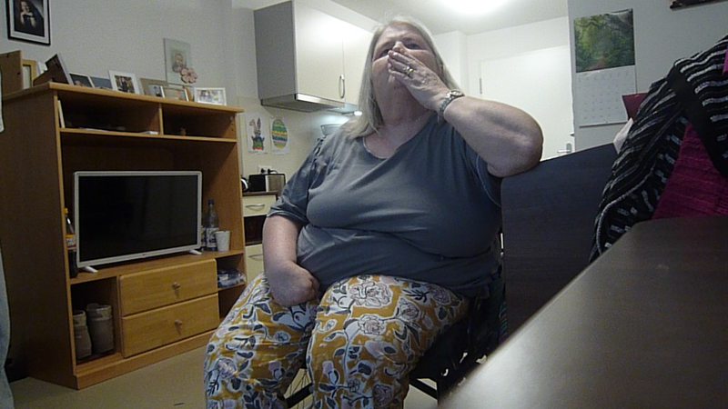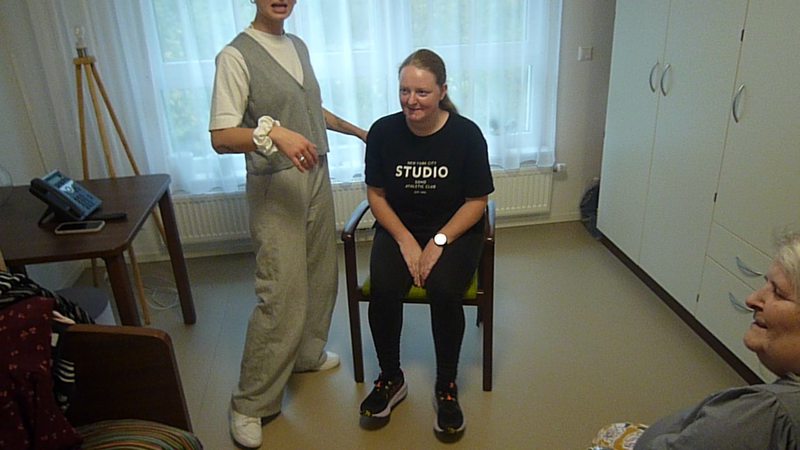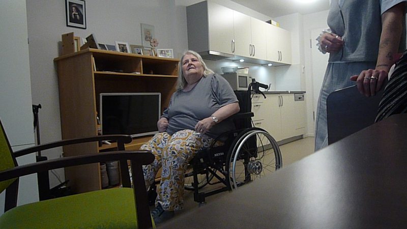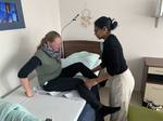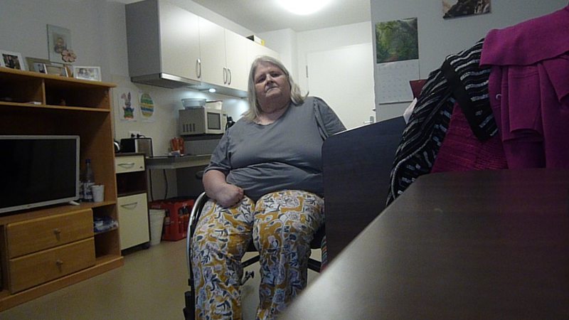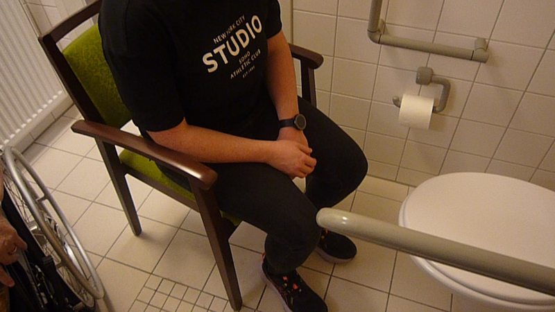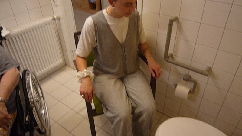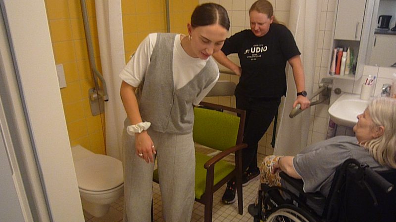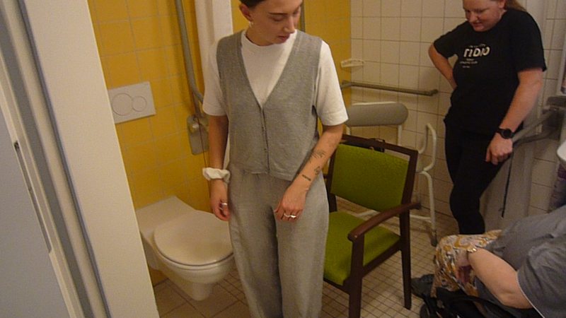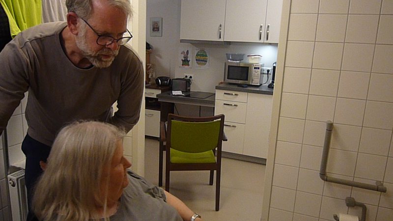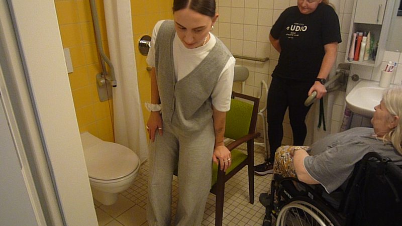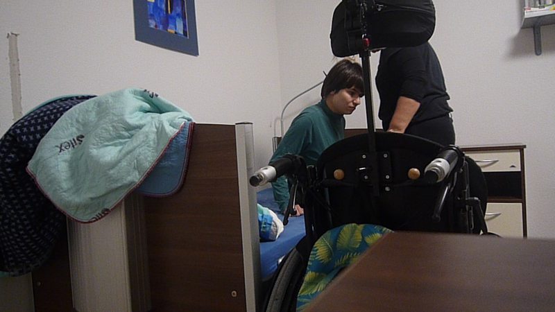 Auch hier wird eine neue Bewohnerin (Simone) vom Rollstuhl ins Bett gehoben.