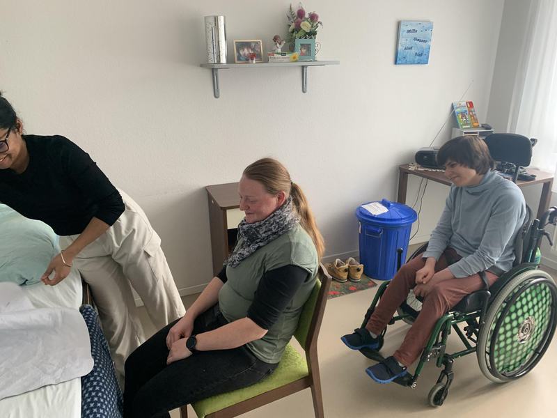 Simone, Nadja und Golo - Transfer ins Bett aus dem Rollstuhl