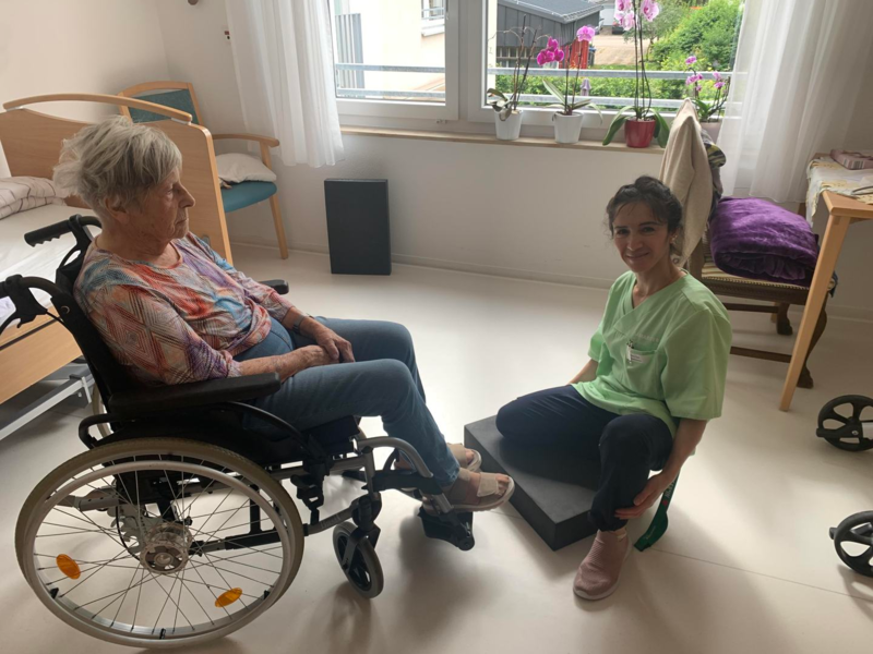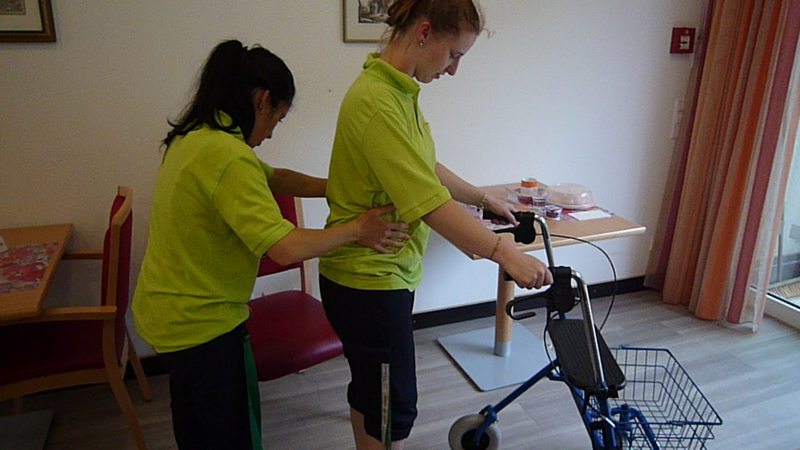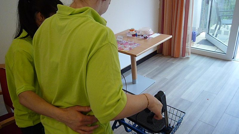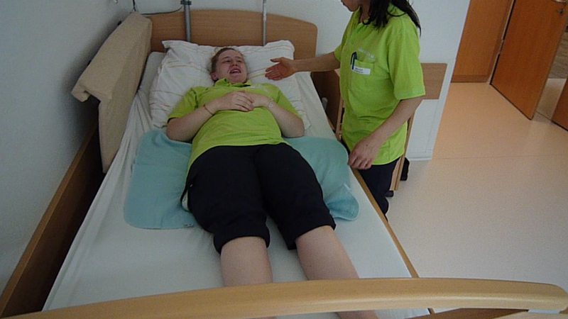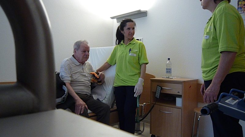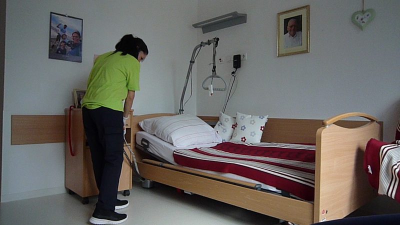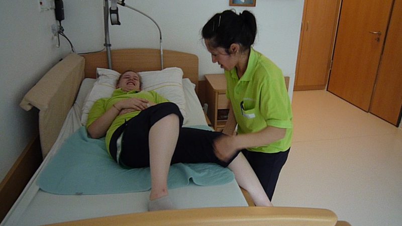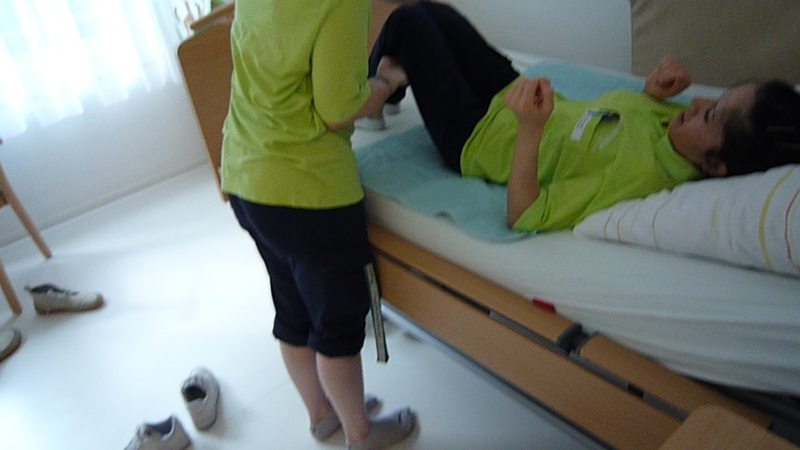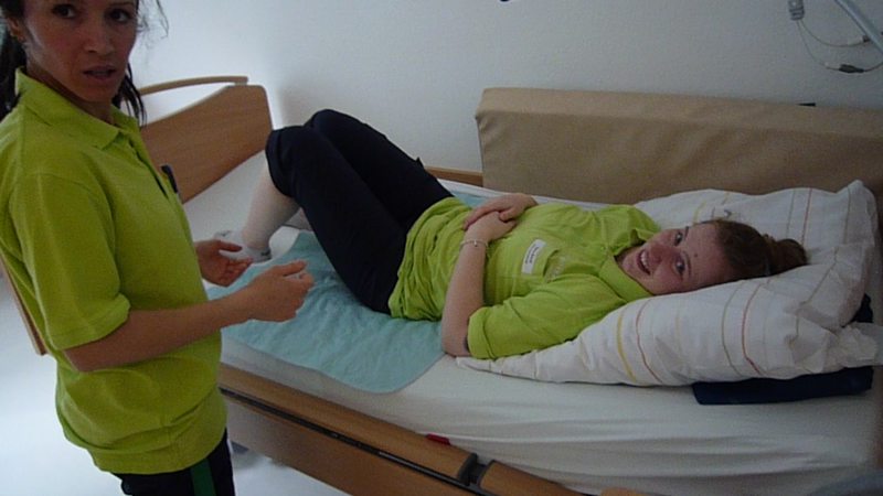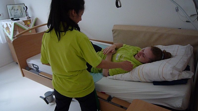 Aufstehen vom Bett, Bewegung der Mitarbeiterin, Anpassung der Umgebung